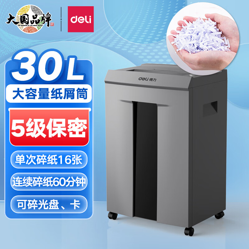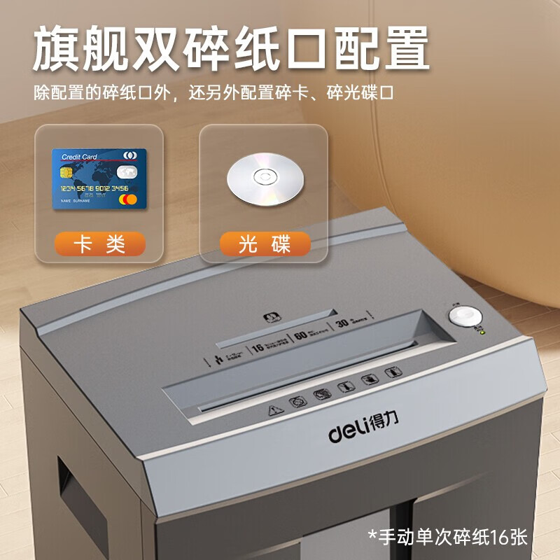 得力(deli)9906 碎纸机高保密碎纸机 办公家用长时间粉碎机 16张 60分钟 长时间碎纸机